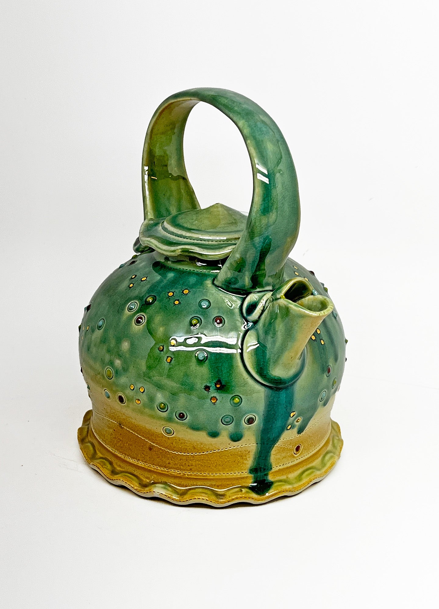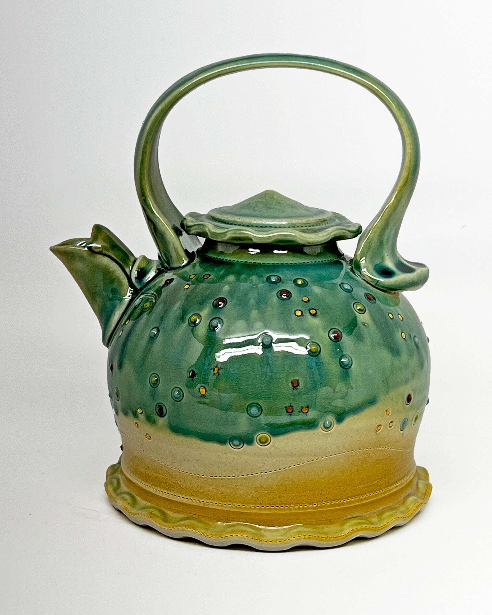 Tea Kettle - shiny green & gold