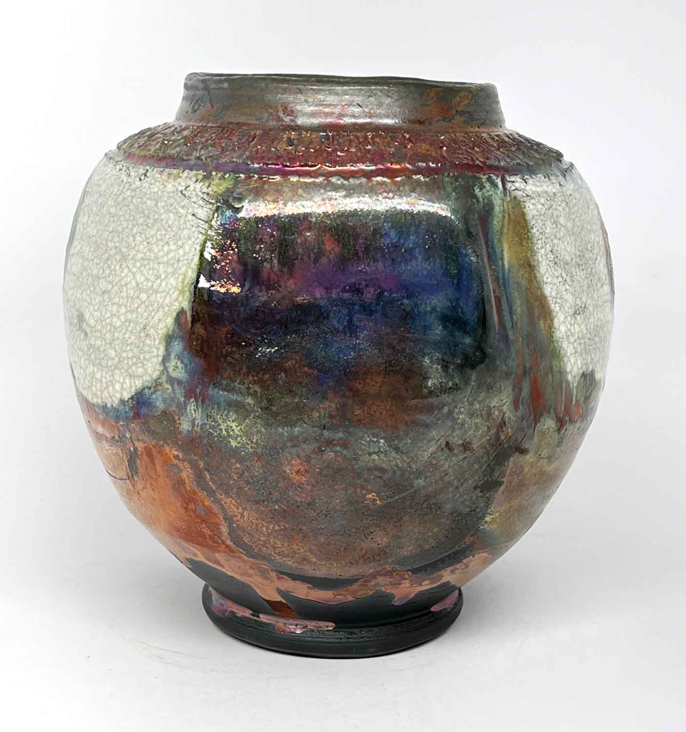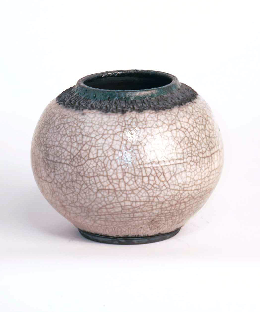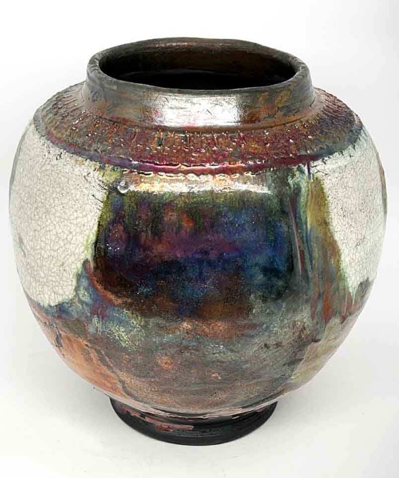 Raku Vase - Crackle Moon Jar
