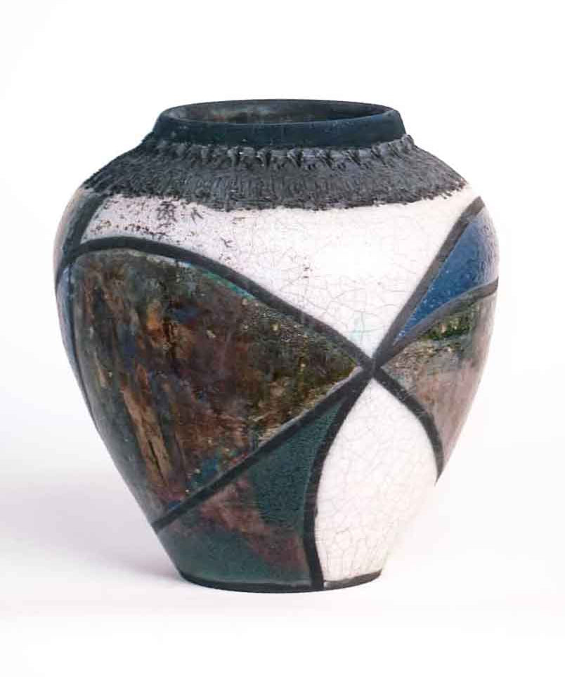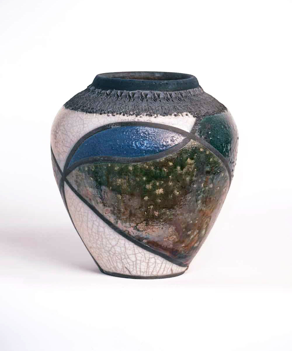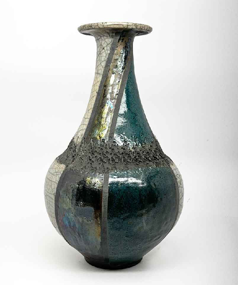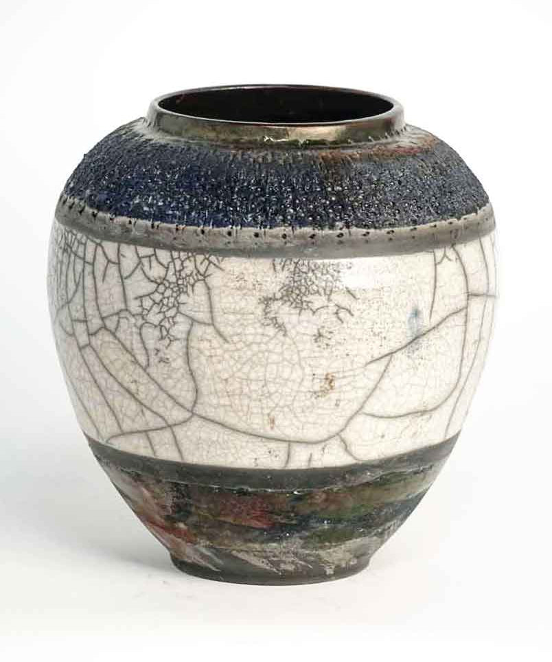 Raku Vase - Crackle Banded