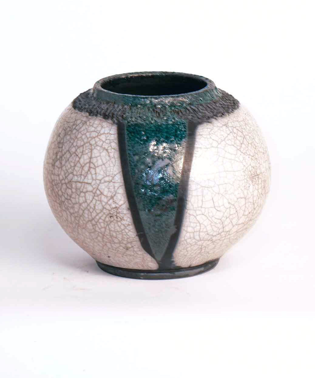 Raku Vase - Crackle with Green Rim