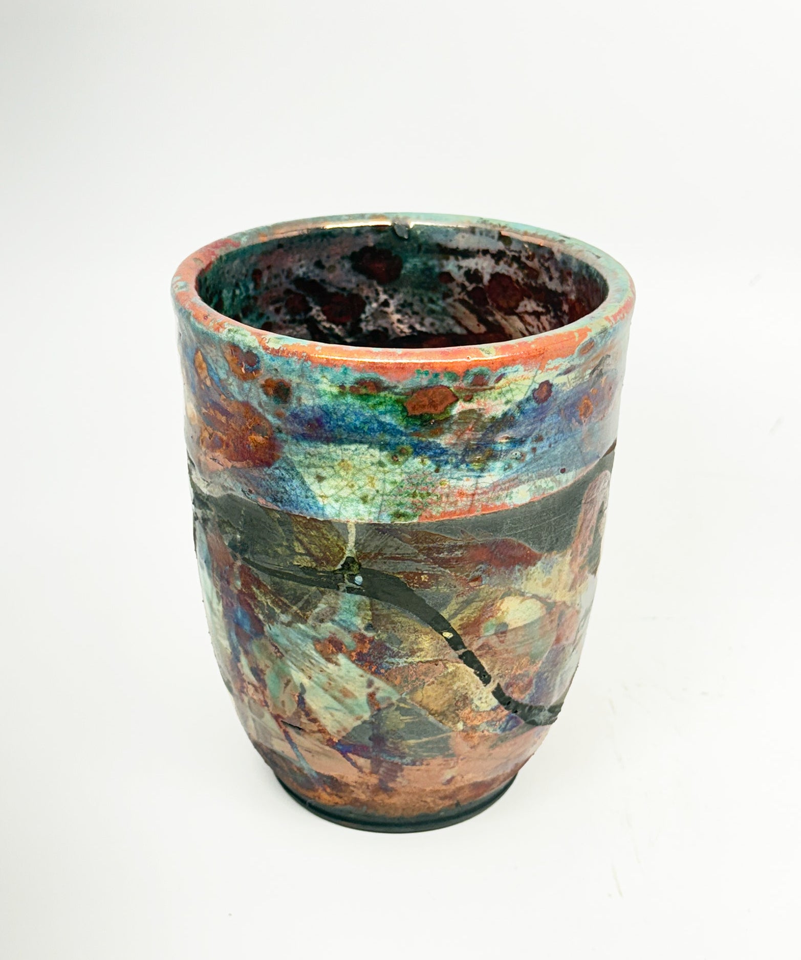 Raku Vase - Copper Cylinder Small