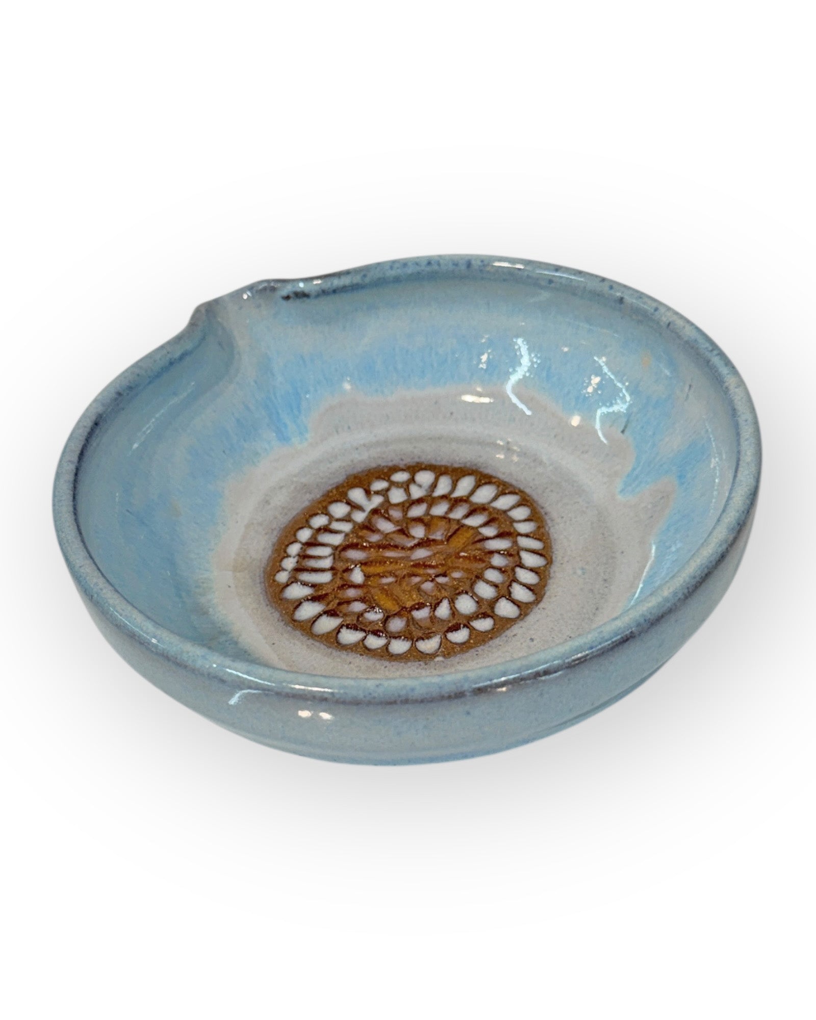 This handcrafted ceramic garlic grater dish by Jonathan Mark is a versatile kitchen essential designed for both preparation and presentation. The interior features raised ceramic ridges that effortlessly grate garlic, ginger, nutmeg, hard cheeses, and more—creating a smooth paste that preserves natural oils and flavor without the harshness of metal graters.