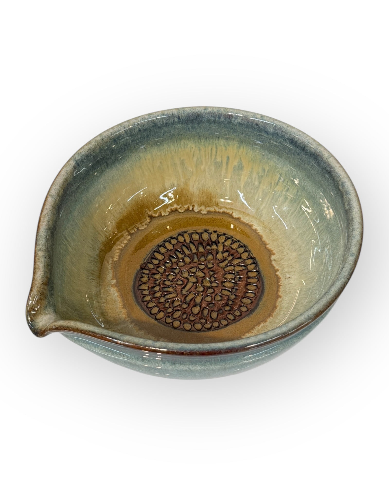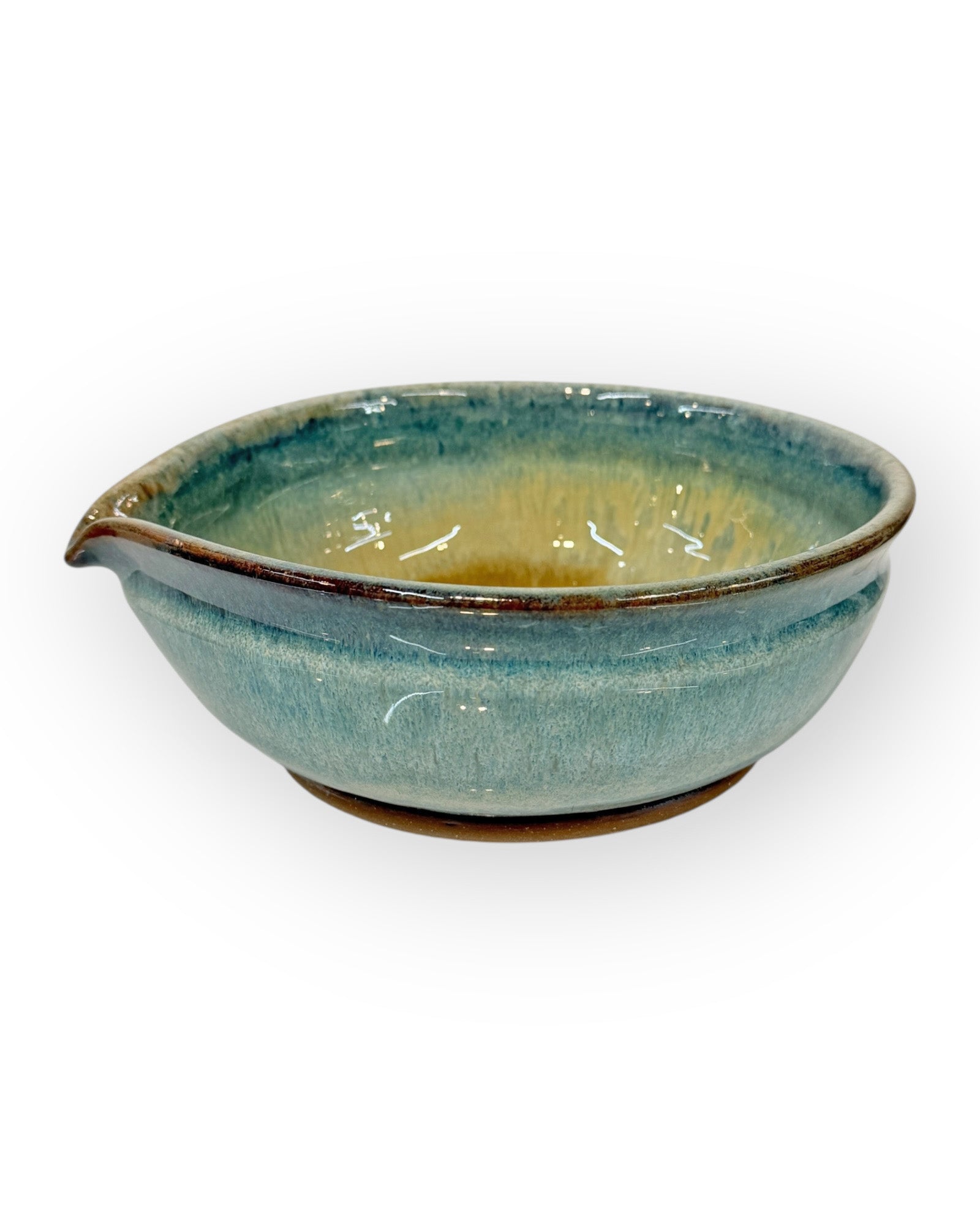 Thoughtfully designed with a built-in spout, this piece allows you to easily pour marinades, dressings, or infused oils directly from the dish, making it as functional as it is beautiful. Once your sauce is made, the dish transitions seamlessly to the table as a bread dipping bowl—perfect for olive oil, balsamic, or herb-forward dips.