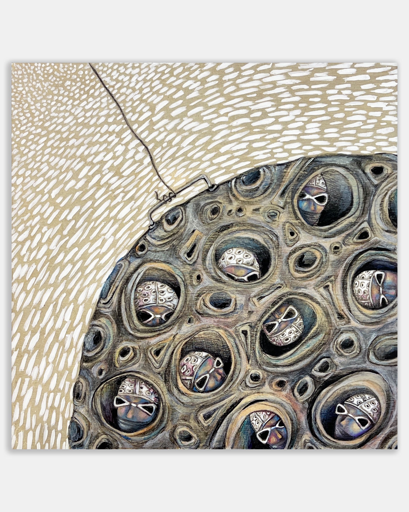 Blending symbolism with vibrant mixed media, Michelle Lopez’s conceptual paintings explore themes of memory, rhythm, connection, and resilience. Each animal or botanical subject—like woodpeckers, forget-me-nots, or clownfish—carries a deeper meaning, inviting reflection while celebrating the beauty of nature. Thoughtful and imaginative, these works add both color and conversation to any collection.