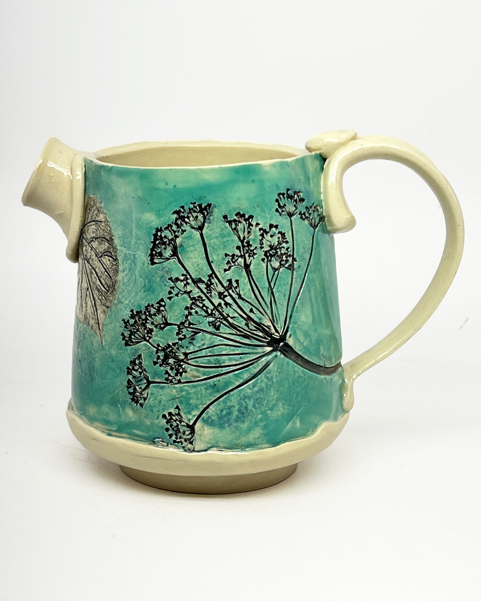 Each piece features real leaf and floral impressions, creating subtle textures and organic beauty. Handcrafted in Colorado, these ceramics bring everyday joy to the table while celebrating the artistry of the handmade.