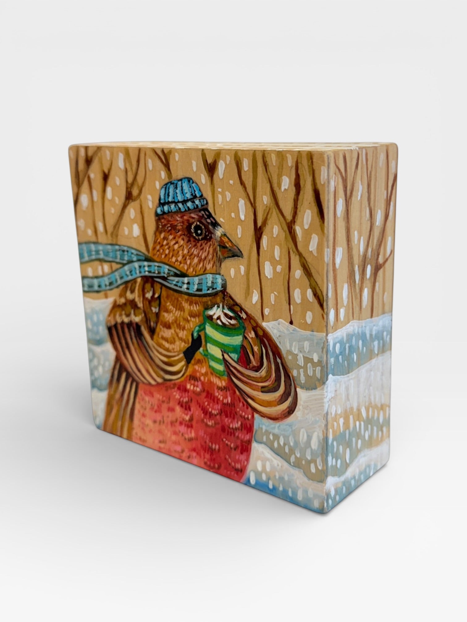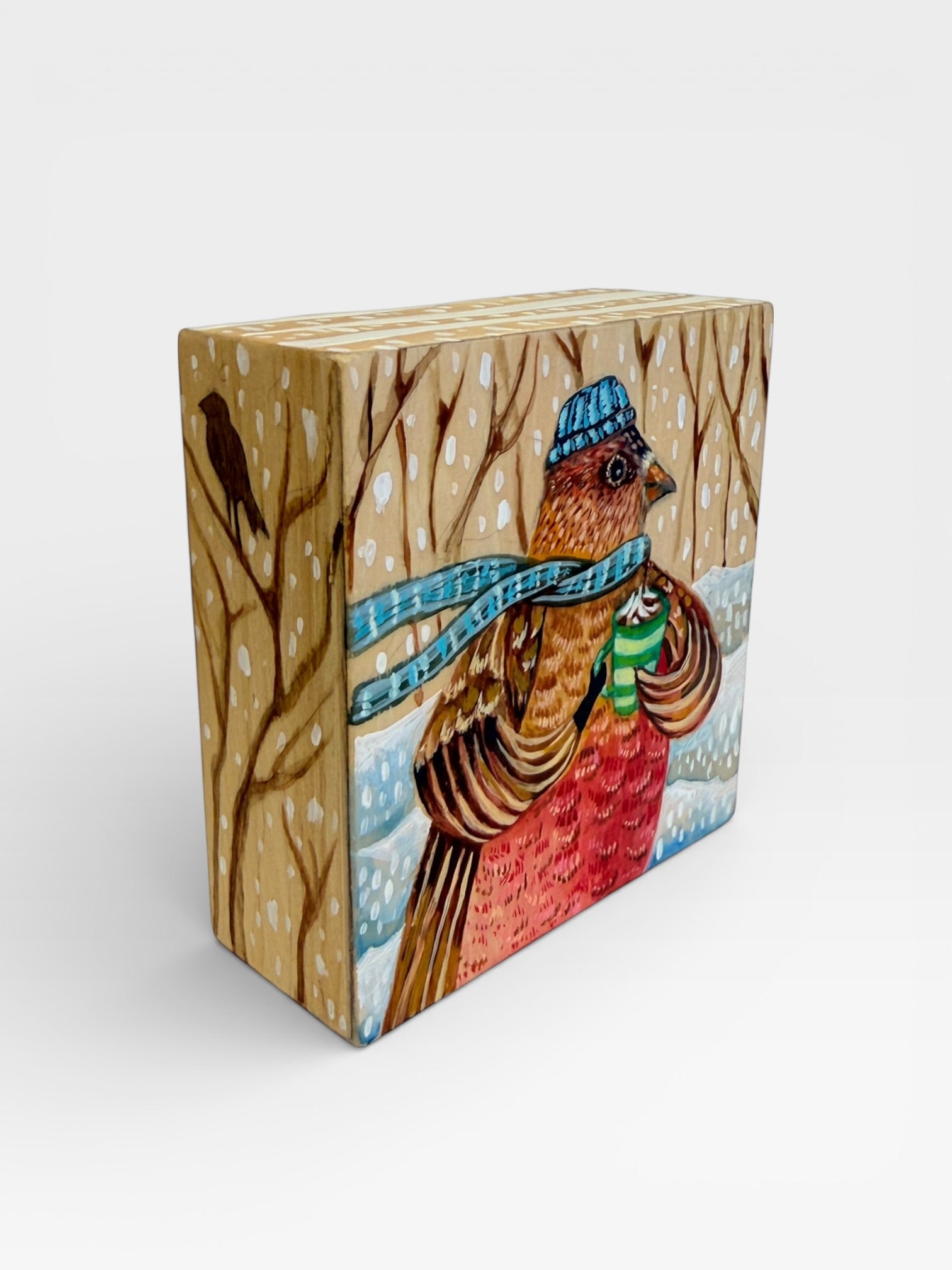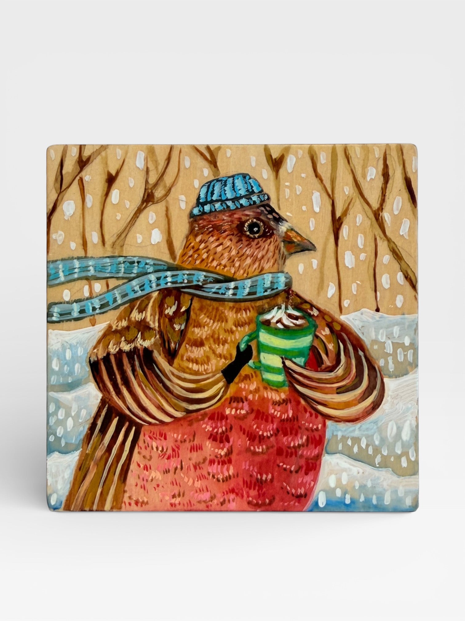 Whimsical and nature-inspired, Michelle Lopez’s illustrated animals are brought to life with watercolor, colored pencil, India ink, and conte crayon on wood laminate. Influenced by her background in illustration, Michelle’s work blends playful storytelling with vivid color and texture. Her subjects range from bears and mountain goats to owls and birds, reflecting her love of both South American and Colorado wildlife. Perfect for collectors and animal lovers, her art adds a joyful, imaginative touch to any space.