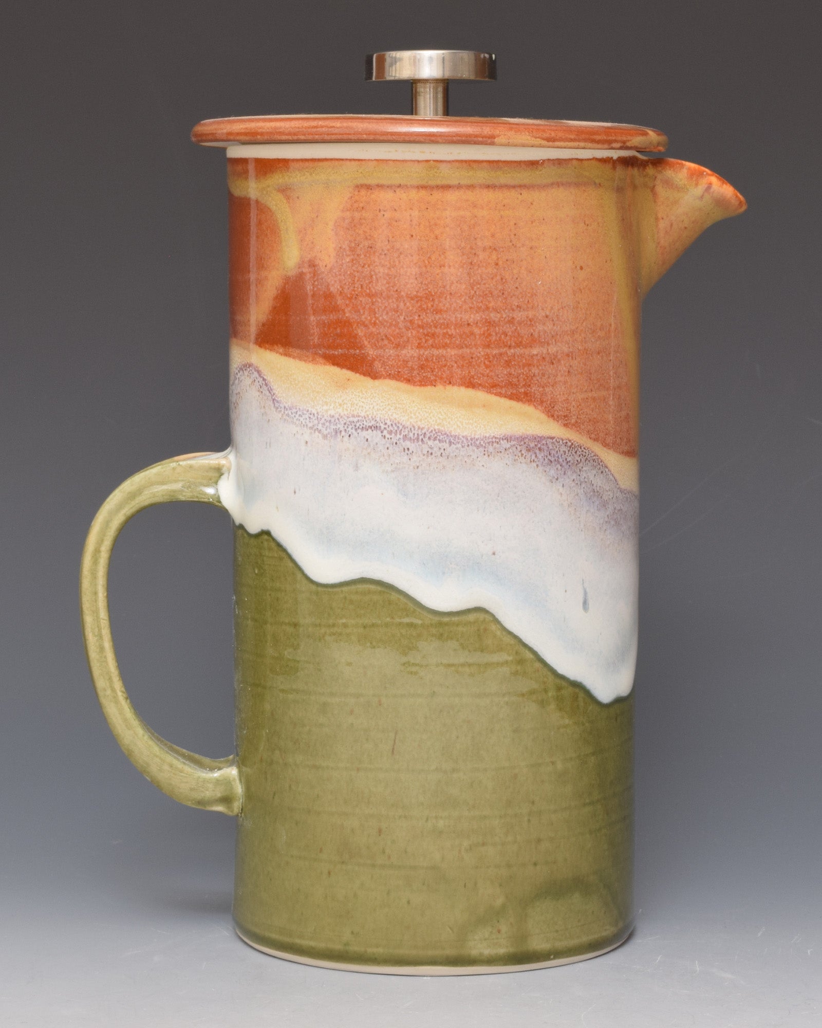 - To make a delicious cup of coffee, plate two or three scoops of medium to course grind coffee in the bottom of the pitcher and fill it with almost boiling water. Place the lid on with the plunger raised. After a few minutes, slowly press the plunger down all the way. Pour coffee gently. Makes four medium sized cups. For best flavor, avoid using finely ground coffee. Pitcher is dishwasher safe and the knob may be unscrewed from the lid so the lid can go in the dishwasher.