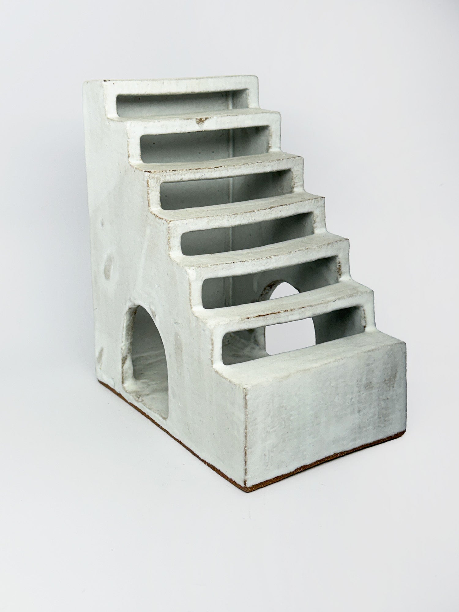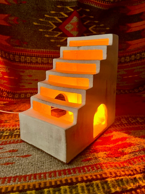 "Ascension" is a piece from Alison's "The Light Within" collection shown at Surface Gallery in October of 2024. The collection of porcelain and stoneware sculptural lamps explored the relationship between self and place, of nature and human domination, and ultimately of what it means to be and feel “at home”. As a descendent of homesteaders and cattle ranchers along the Colorado/ New Mexico border, I've spent a lot of time in the expansive landscapes of the Southwest. These places, especially my family ranch in Stonewall, have held me, comforted me, and brought me back home to myself over and over again. Creating this collection allowed me the time and space to adopt the concept that the most sacred home we can find, foster, cultivate, and nurture - is the home within ourselves. The lighting element was the focus of this work from the beginning, because home is the place where we "leave the light on" to welcome us when we return.