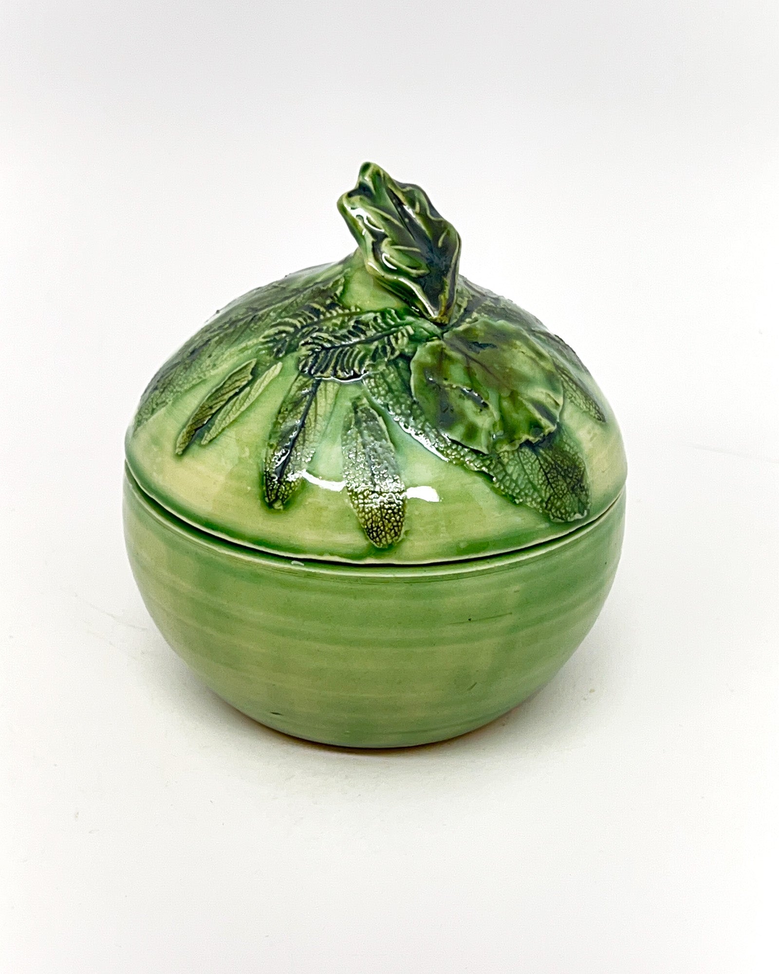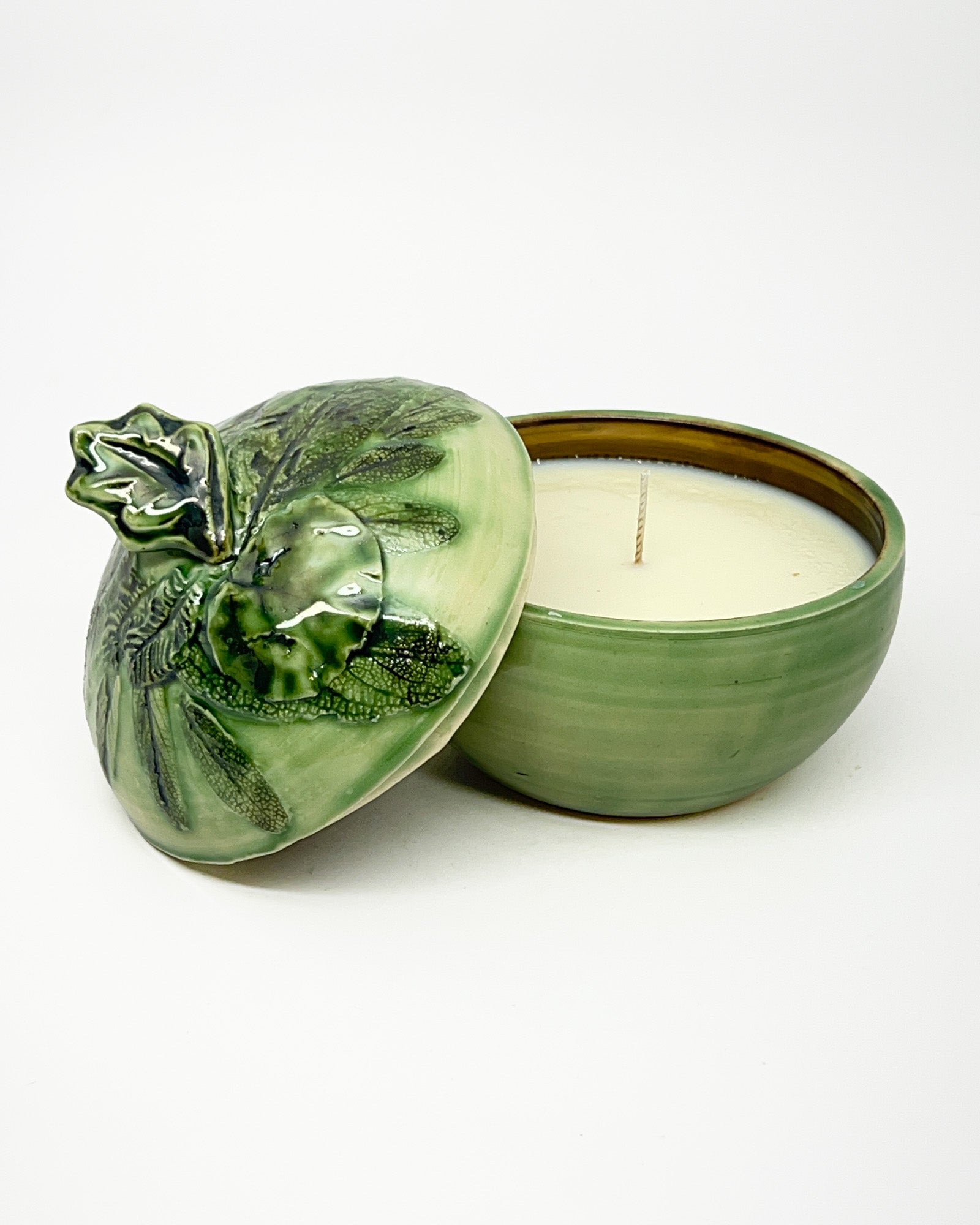 Lidded Candle Bowl, leaf knob