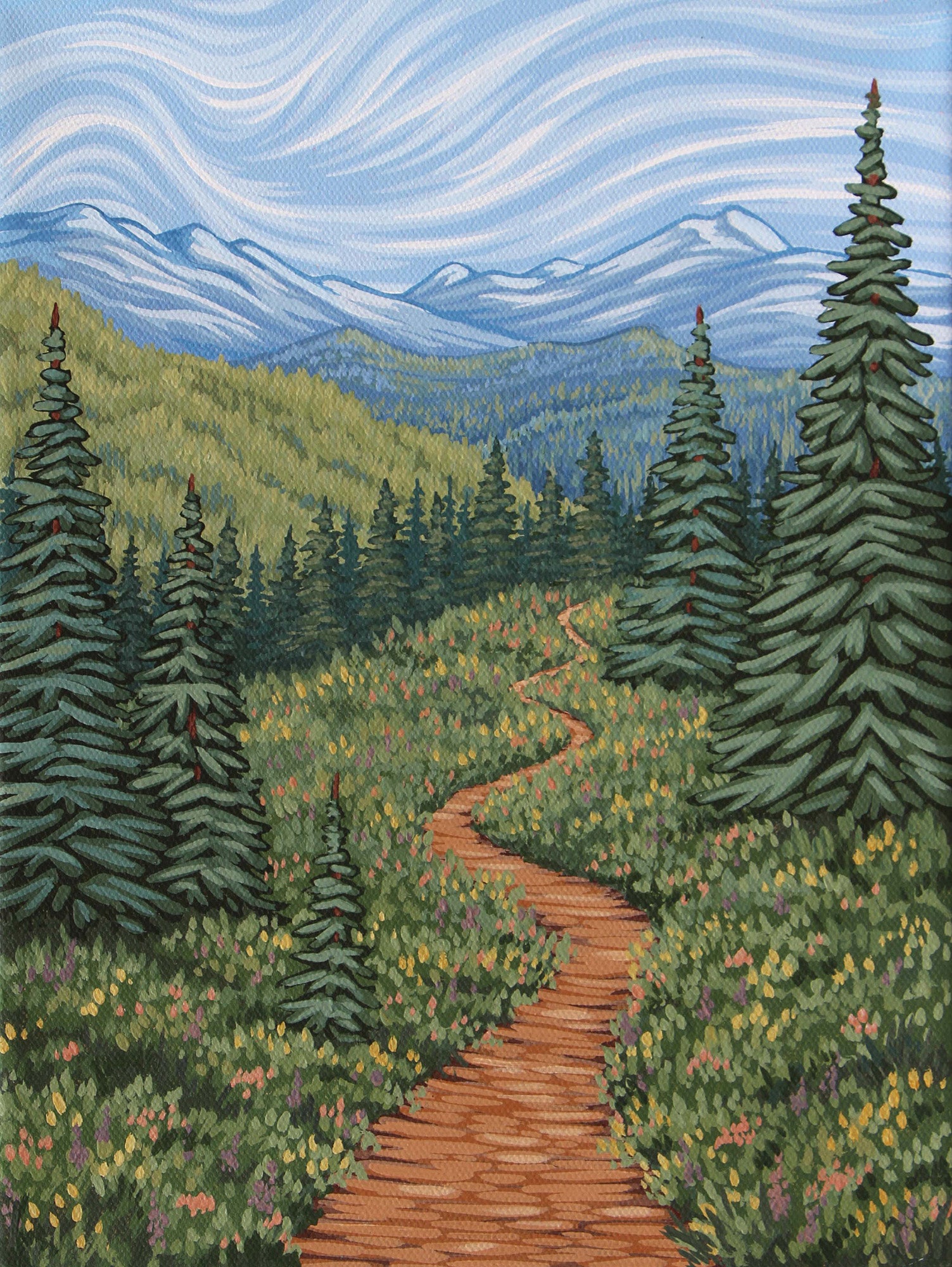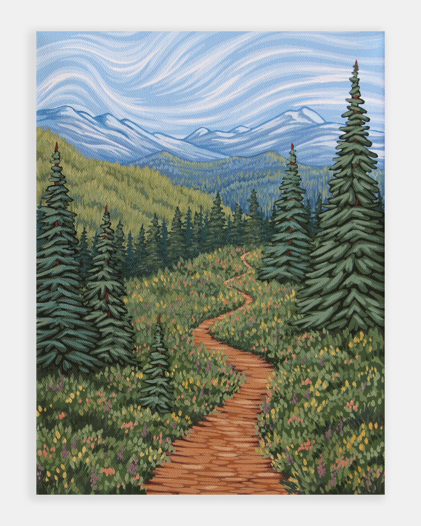 Immerse yourself in the beauty of the Mountain West with an original acrylic painting by Colorado artist Stephanie Moon. Her vibrant, color-rich landscapes capture the drama of alpine peaks, sweeping skies, and wildflower meadows in a bold, contemporary style. Every brushstroke reflects her deep connection to the Colorado wilderness, bringing the spirit of the Rockies into your home.