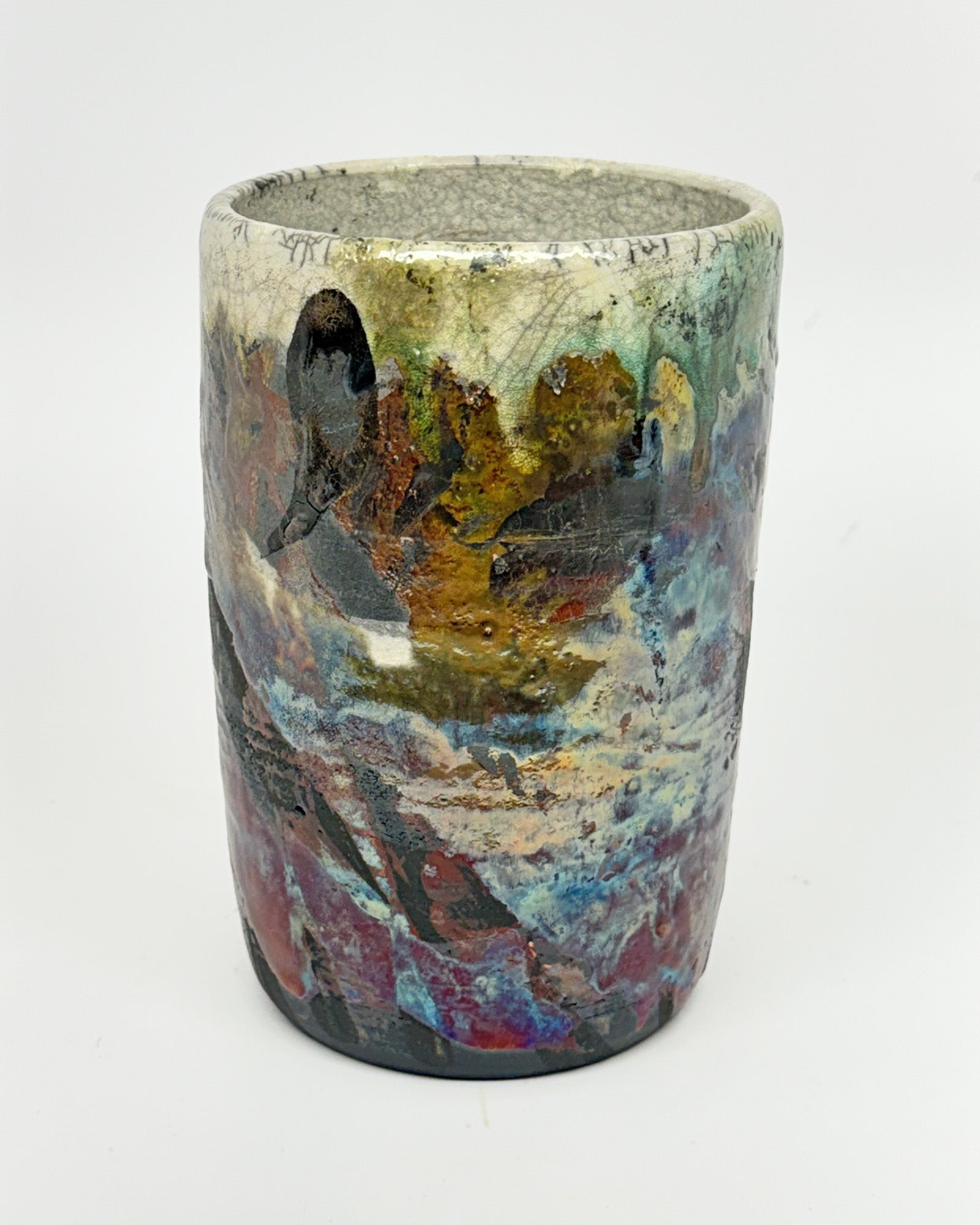 Raku Vase - White Crackle Cylinder