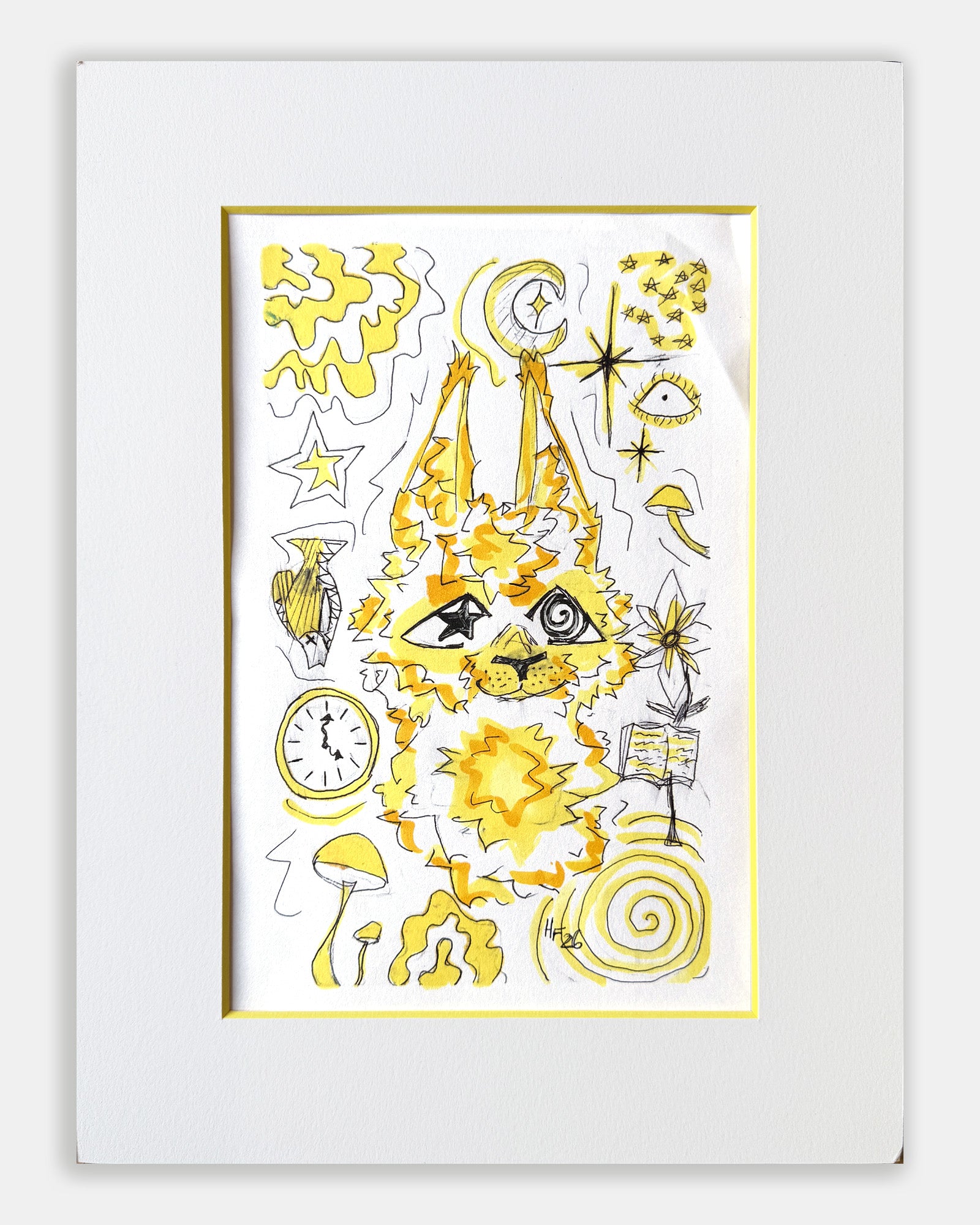 This original ink and marker drawing by Hazel Fair features her signature colorful style and playful imagery inspired by animals, symbols, and everyday joys. Created with bold linework and a bright palette, each one-of-a-kind piece reflects Hazel’s optimistic approach to creativity and self-expression. As the youngest artist represented at 45º Gallery, Hazel brings a fresh, joyful perspective to contemporary illustration.